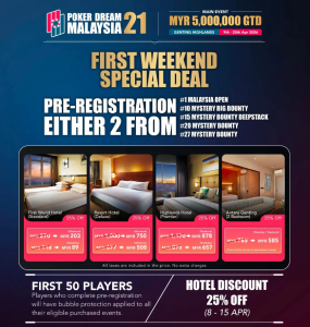 本次 Poker Dream 21 最受矚目的核心焦點,毫無疑問就是保底獎金高達 500 萬馬幣的主賽事。以 3,200 馬幣的報名費來看,這場主賽事不只門檻相對親民,獎金池規模也極具吸引力,預計將吸引全亞洲大量玩家進場角逐。