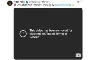 Triton Poker 流暢的 YouTube 直播週一無預警消失,至今仍未恢復。